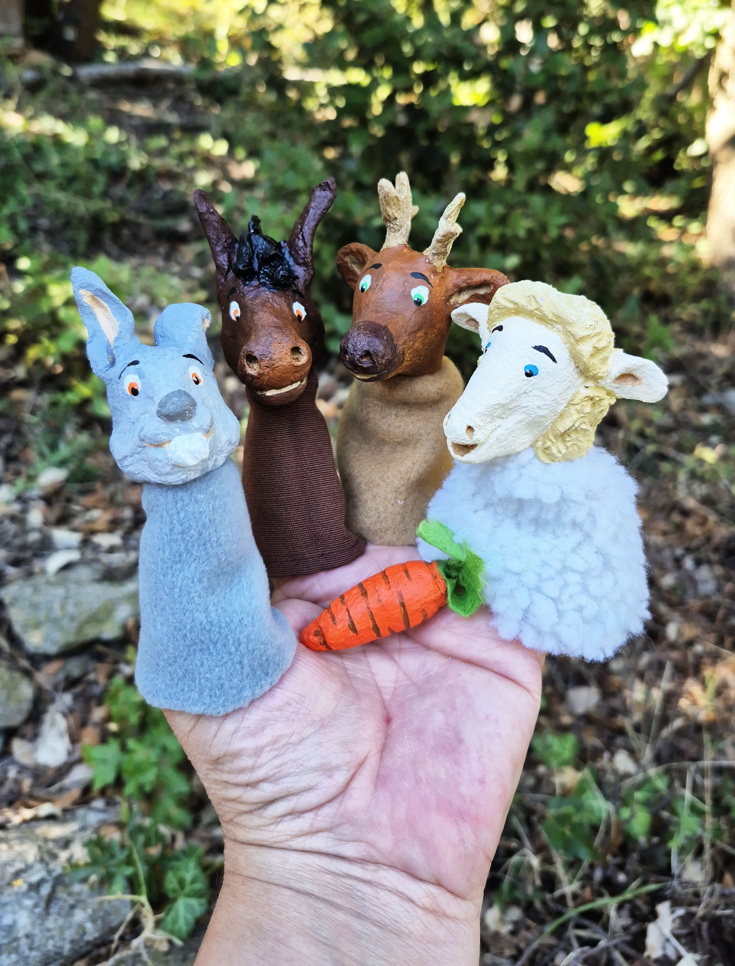 Endinsa't en la màgia dels contes amb aquest conjunt de titelles fetes a mà, peces úniques que donen vida a les històries més estimades. Cada titella està elaborat artesanalment amb detall i cura, per això no n'hi ha dues d'exactament iguals: cadascun té la seva pròpia personalitat!