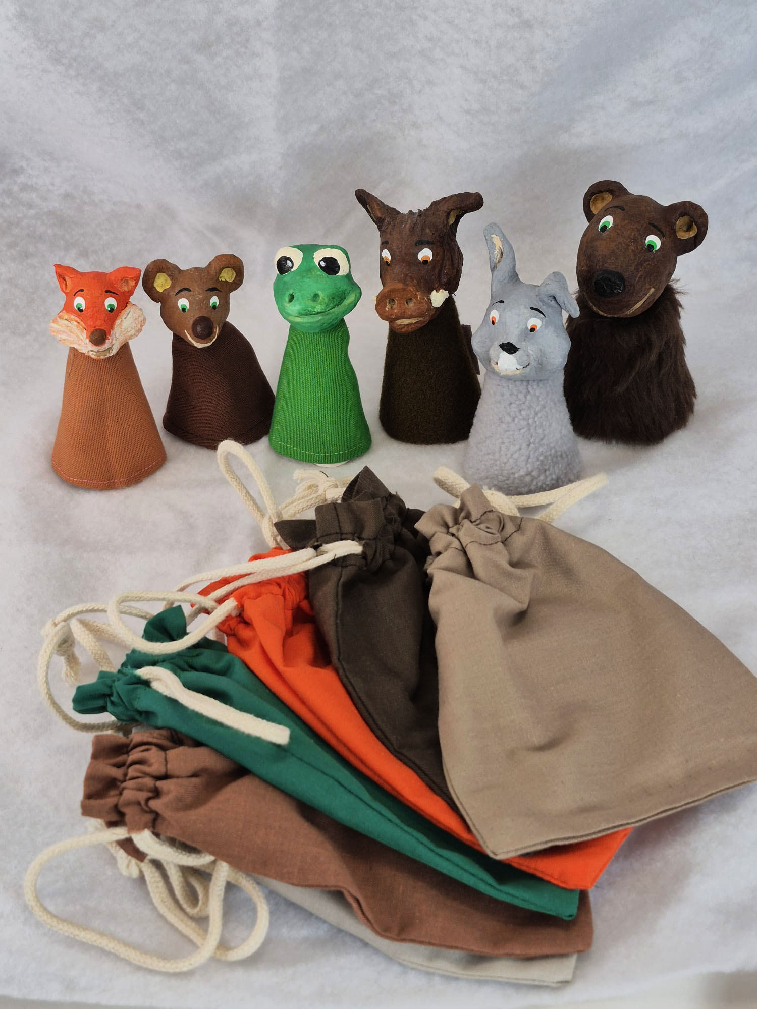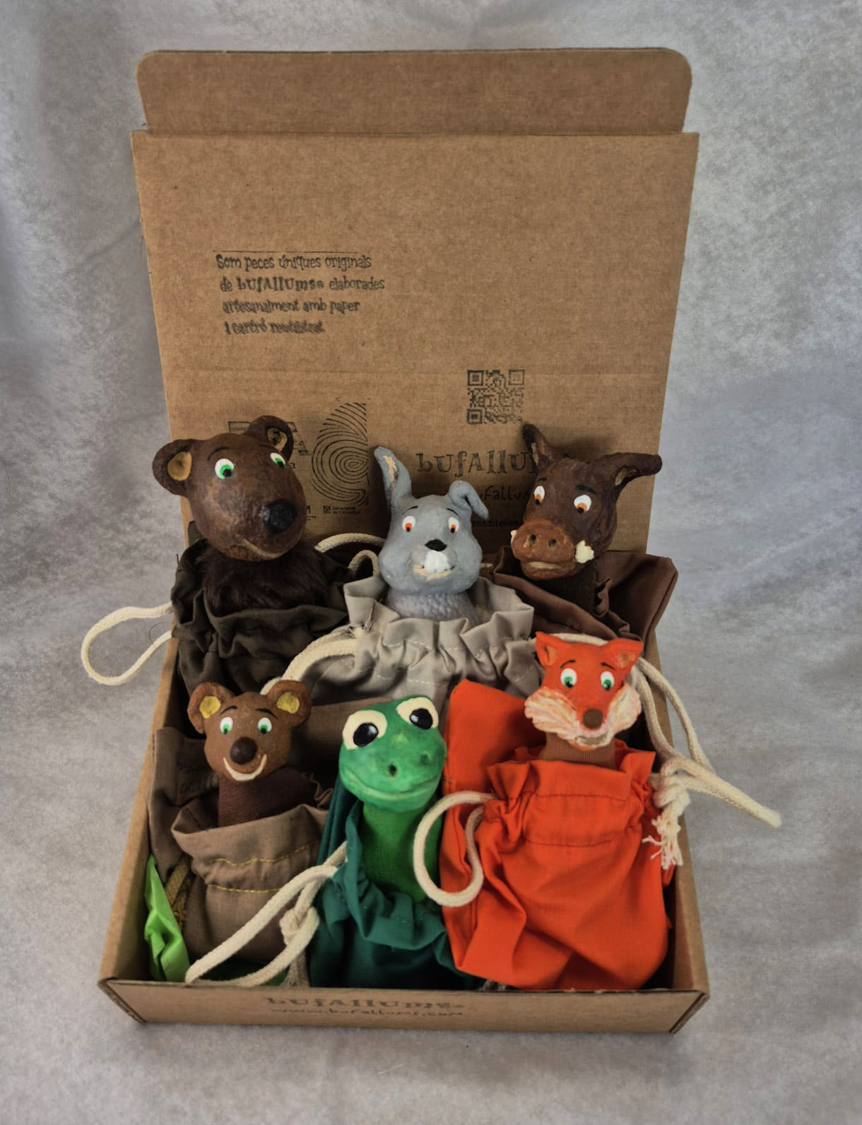 Aquest conjunt està inspirat en els 6 animalons del conte Em feu lloc? de Loek Koopmans. És un petit homenatge a una història preciosa sobre l’acollida, la generositat i la calor de la companyia en dies de fred. Les titelles evoquen l’encant del llibre i, alhora, conserven la seva pròpia personalitat perquè puguin entrar en noves aventures i jocs.