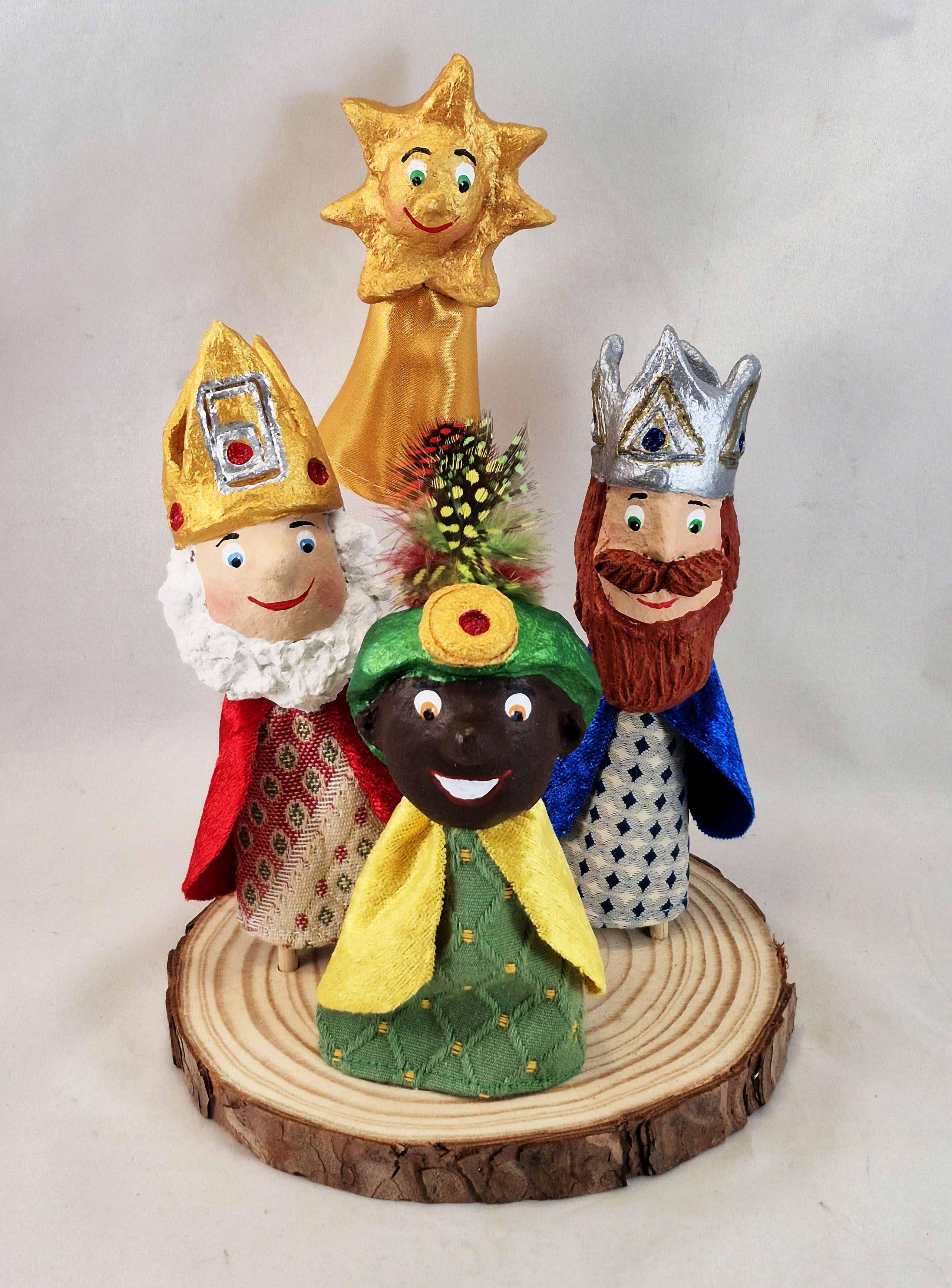 Conjunt de 4 titelles de dit que representen els Tres Reis de l’Orient:Melcior, Gaspar i Baltasar i el titella de dit Estrella, element imprescindible del relat tradicional.