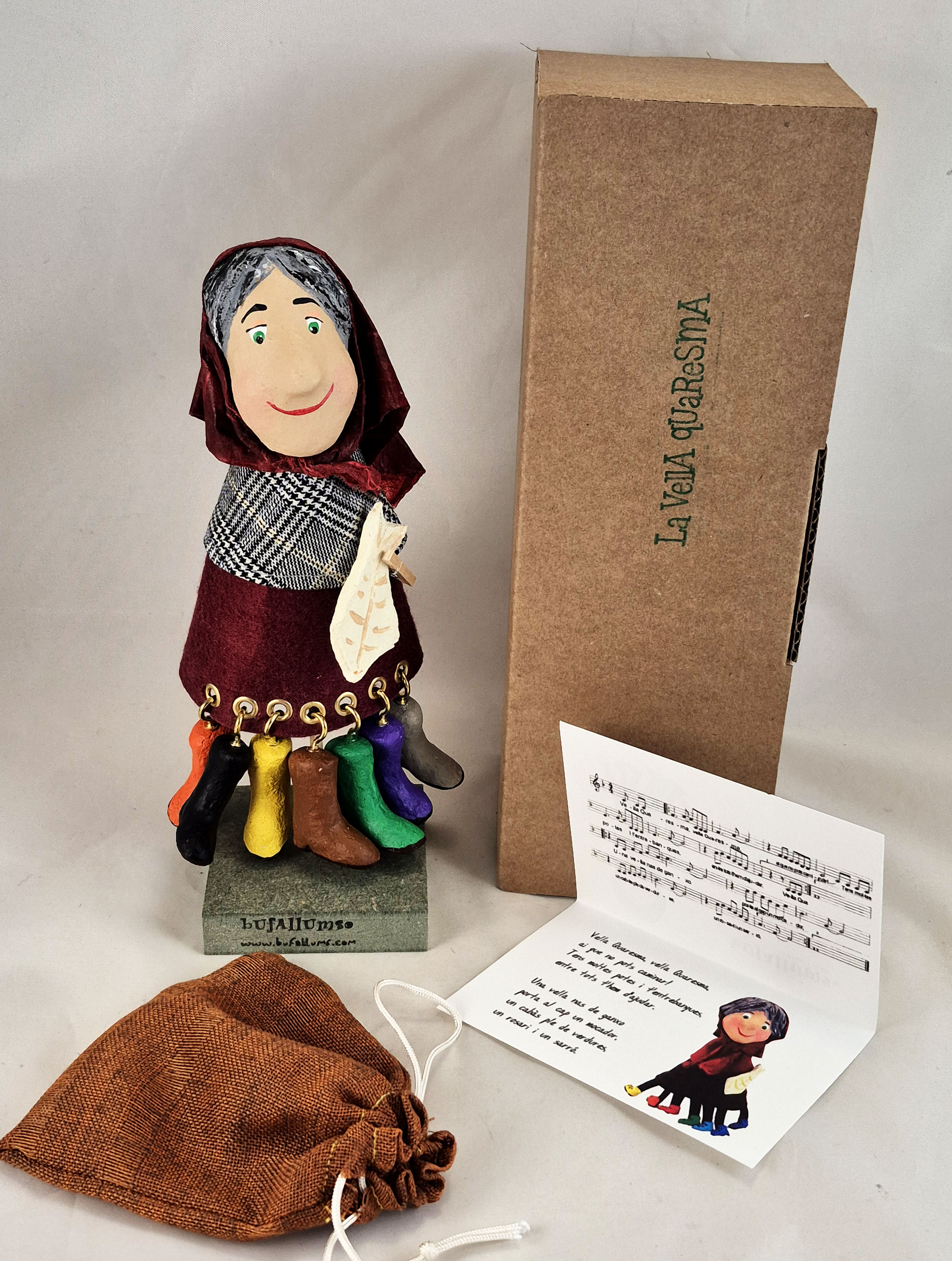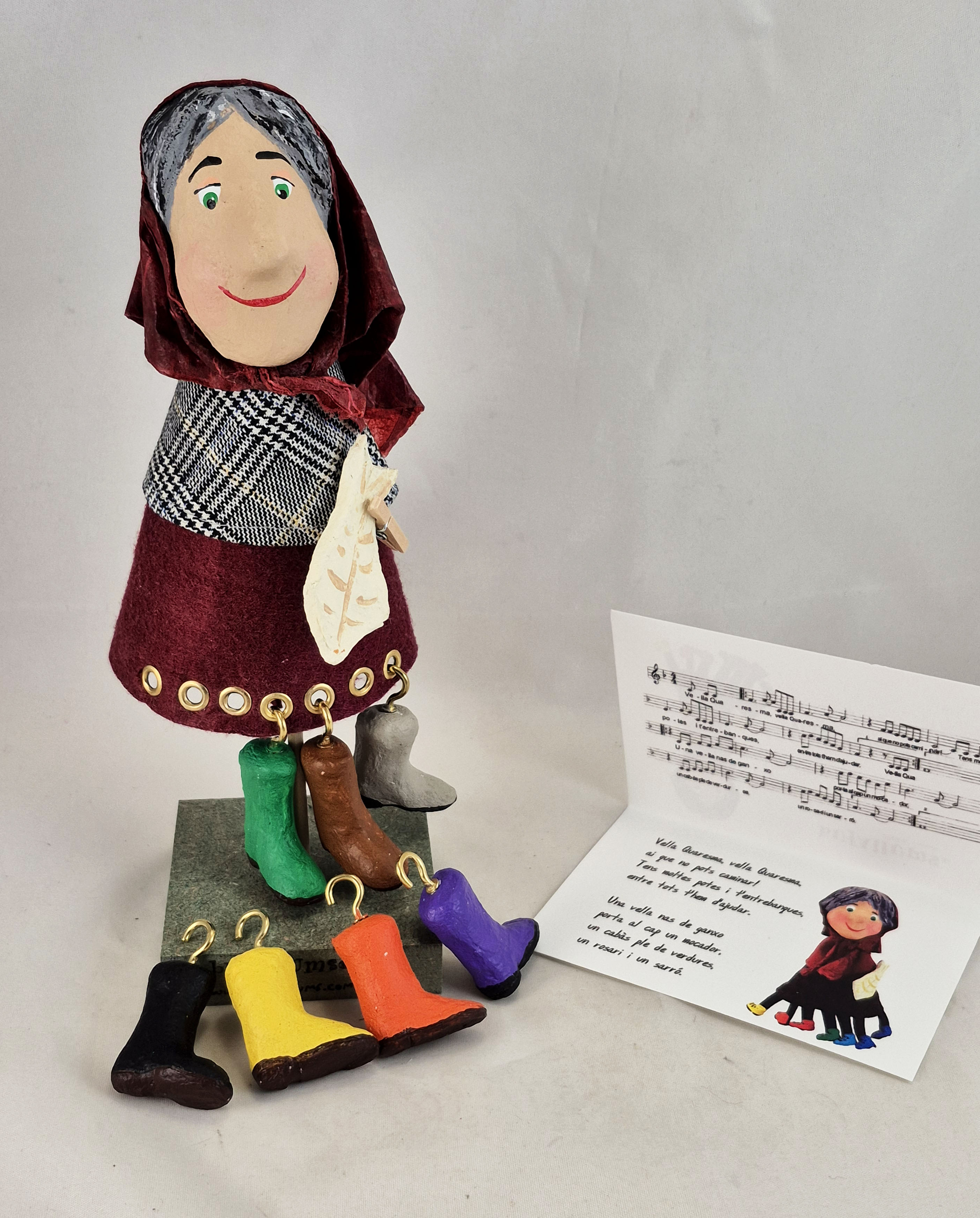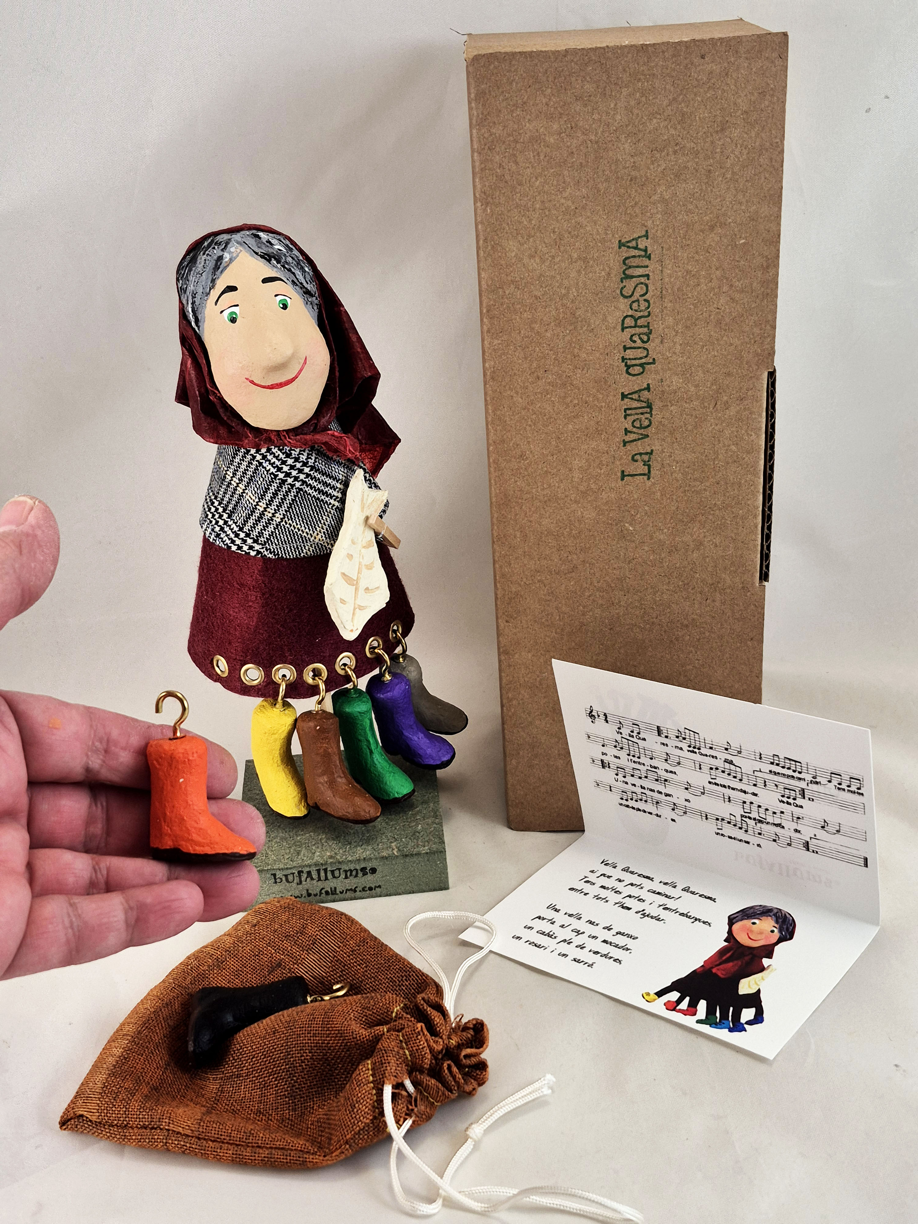 Aquest titella de dit de la Vella Quaresma és ideal per acompanyar la cançó popular d’una manera visual i divertida: amb les seves 7 cames, podeu seguir la tradició de treure’n una cada setmana fins a Pasqua.