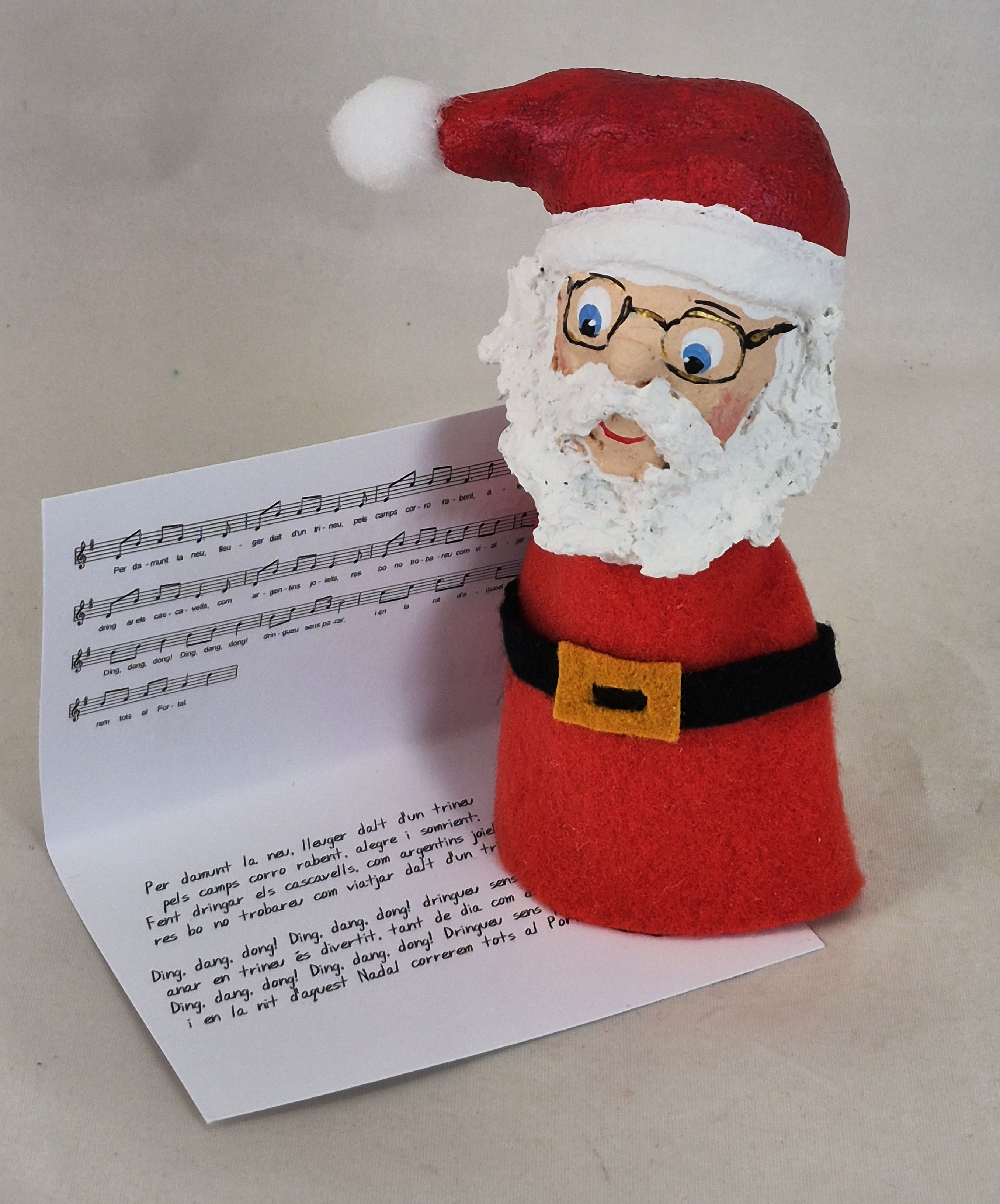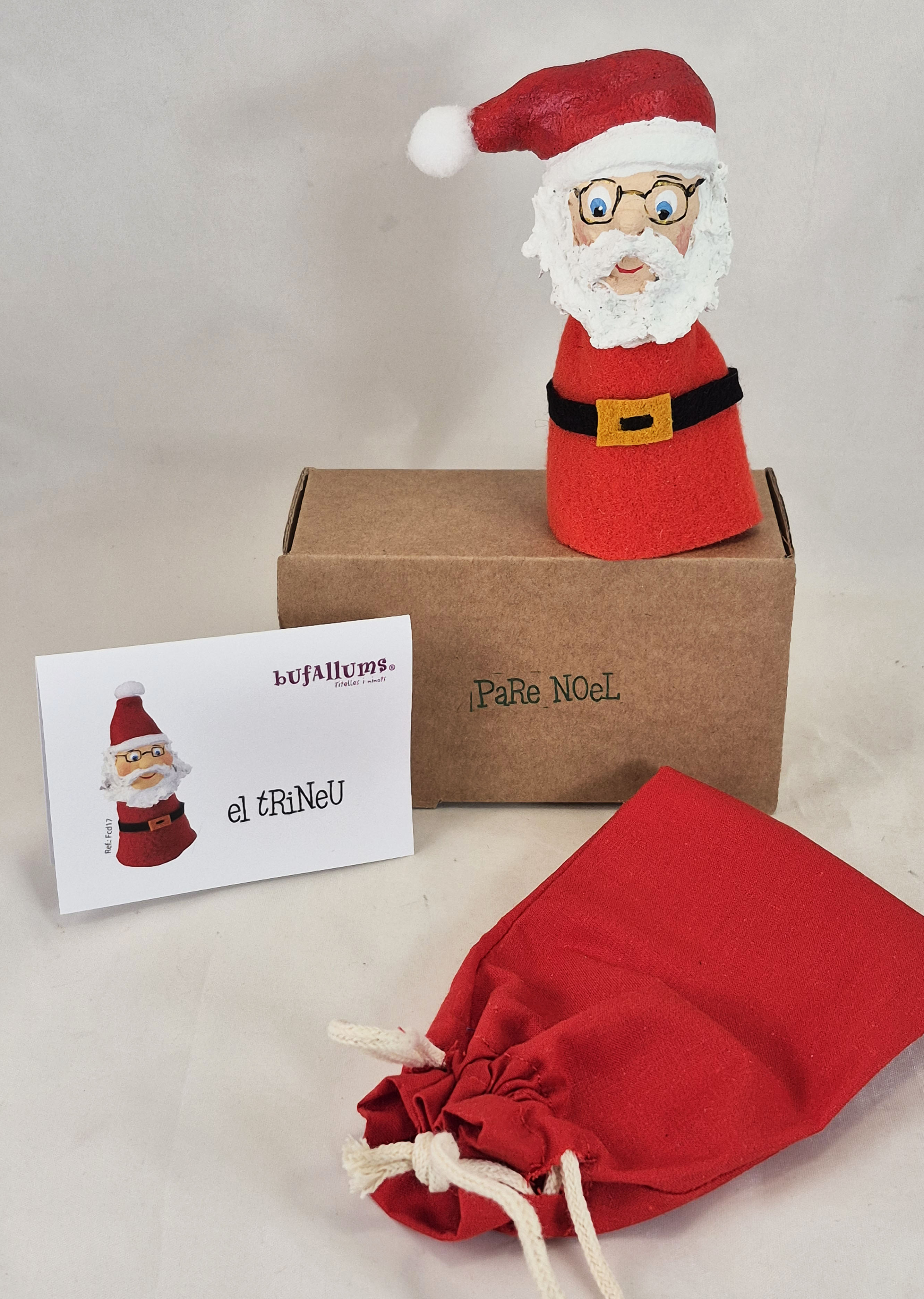 Aquest titella de dit Pare Noel, d’aproximadament 8 cm, és ideal per crear escenes divertides i aventures plenes de somriures. Porta el text i la cançó “El Trineu”, una de les nadales més populars de Nadal, perquè pugueu cantar-la mentre jugueu i ambientar les vostres històries.