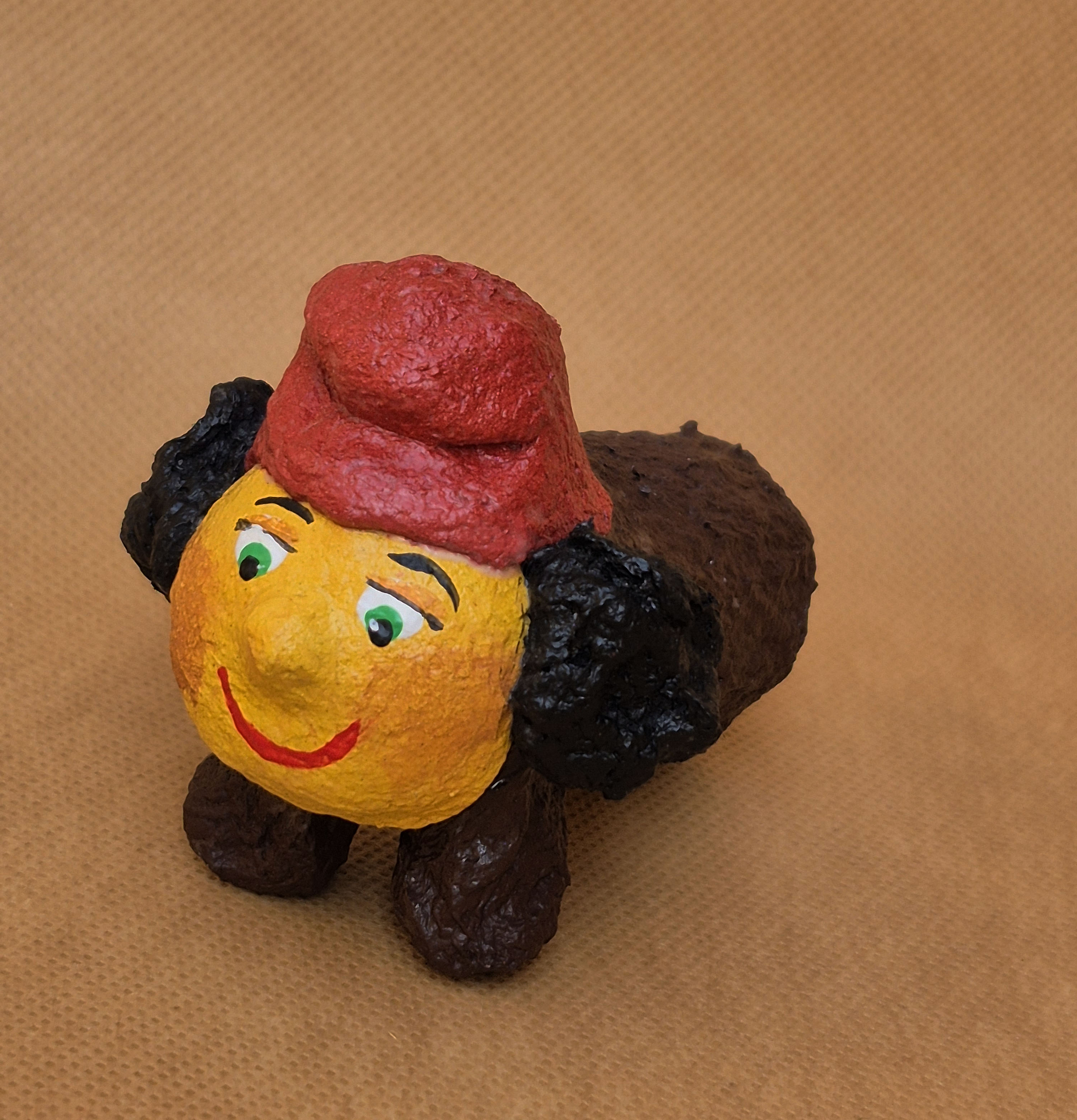 Elaborada artesanalment i modelada completament amb pasta de paper seguint la tècnica pròpia de Bufallums. No utilitzem motlles: cada Tiona és modelada i pintada a mà de principi a fi, per això cada peça és única i irrepetible.