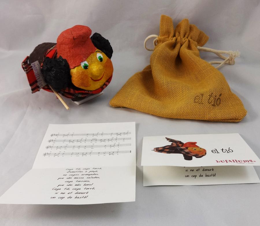 La figura medeix 12 cm de llarg X 6 cm d'ample. Porta el text i partitura de la cançó, la manteta i la bossa de sac per a guardar-la!