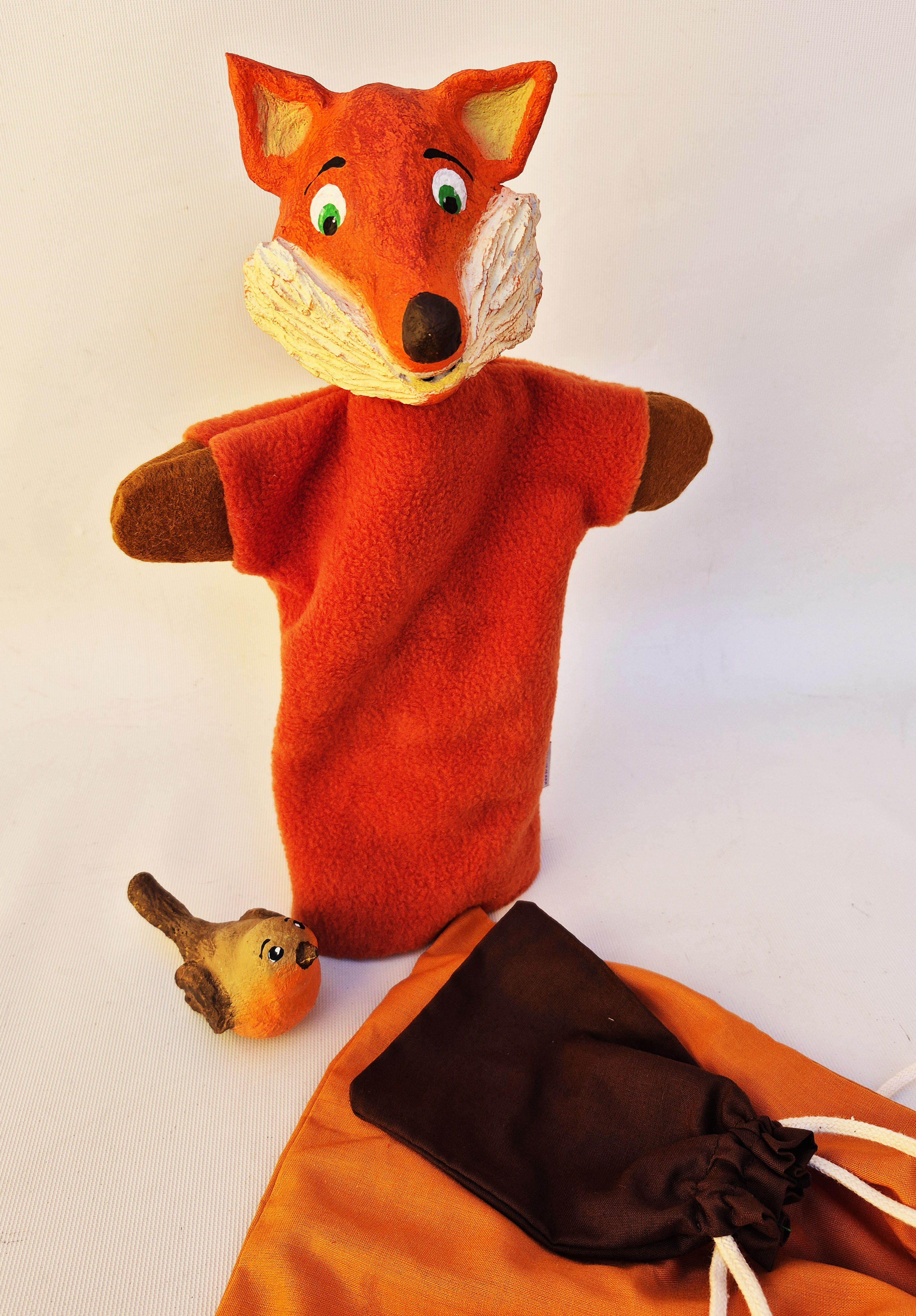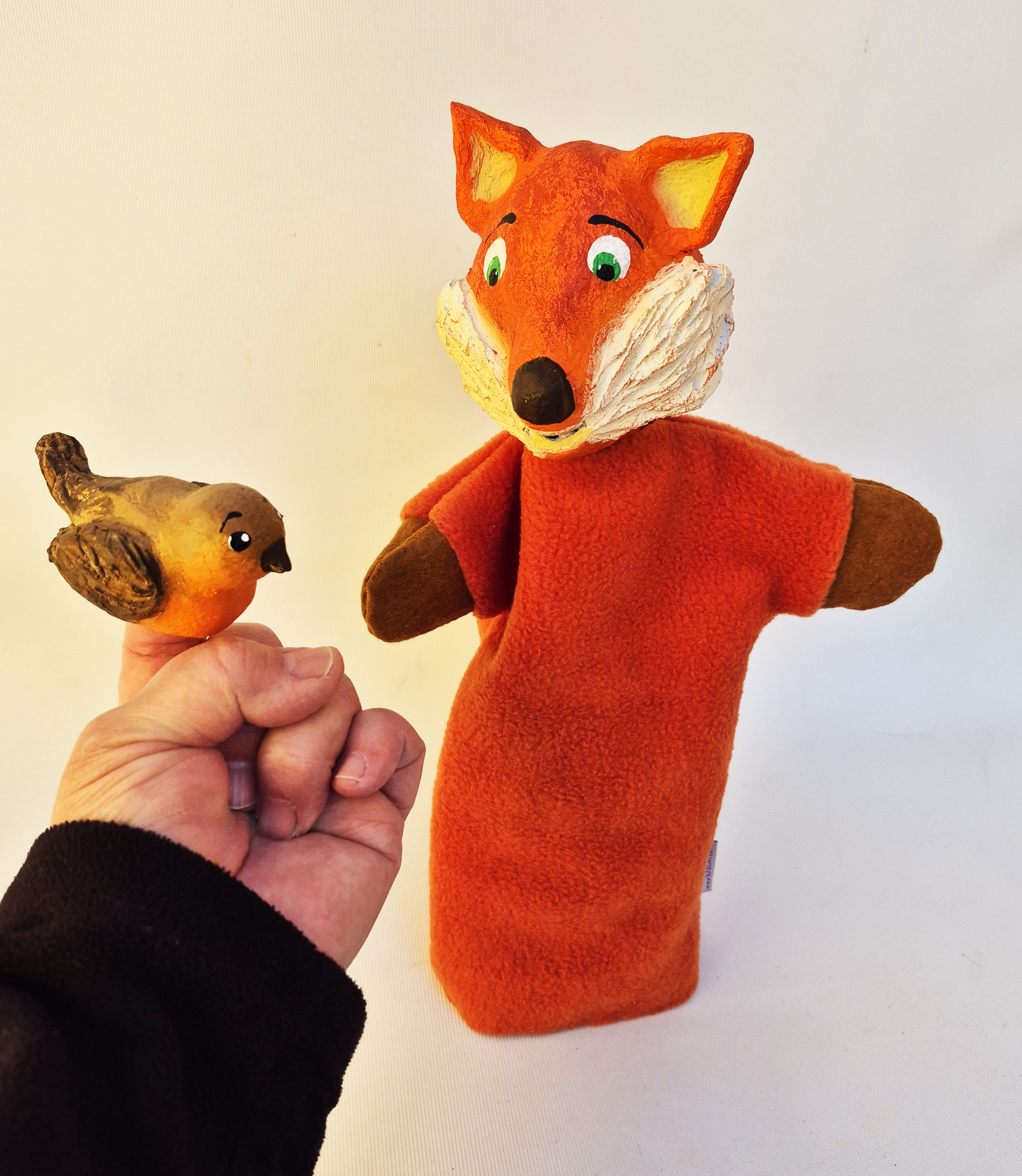 – 1 titella de dit: Ocell Pit-roig. Figura completa de pasta de paper.