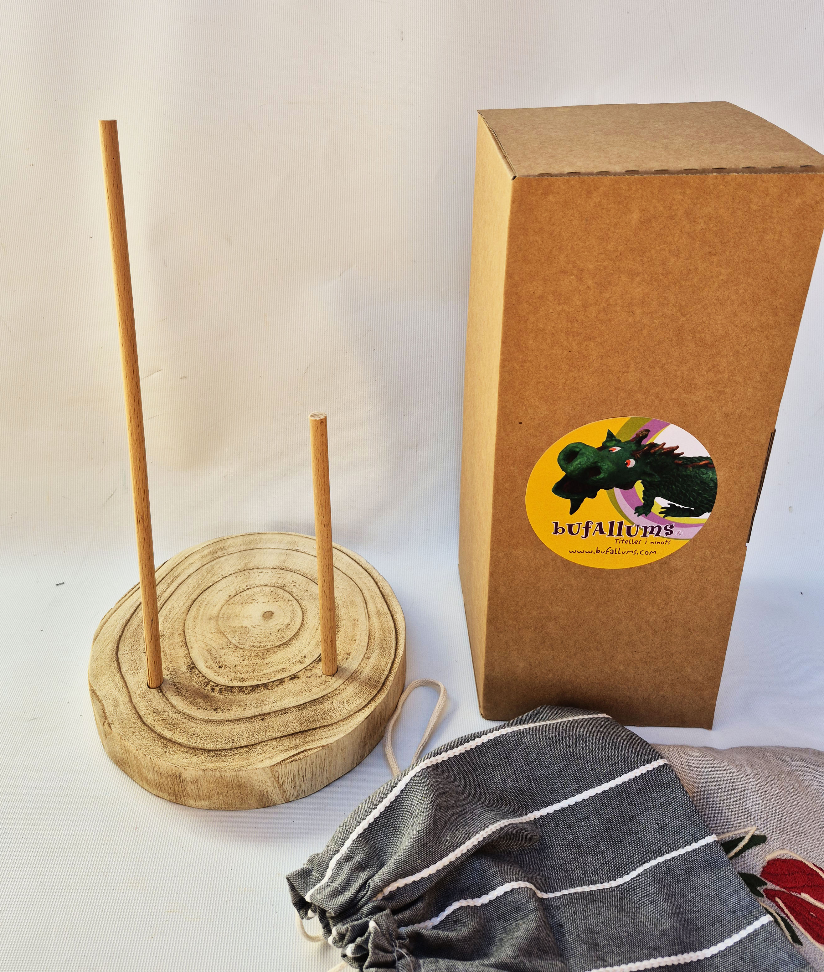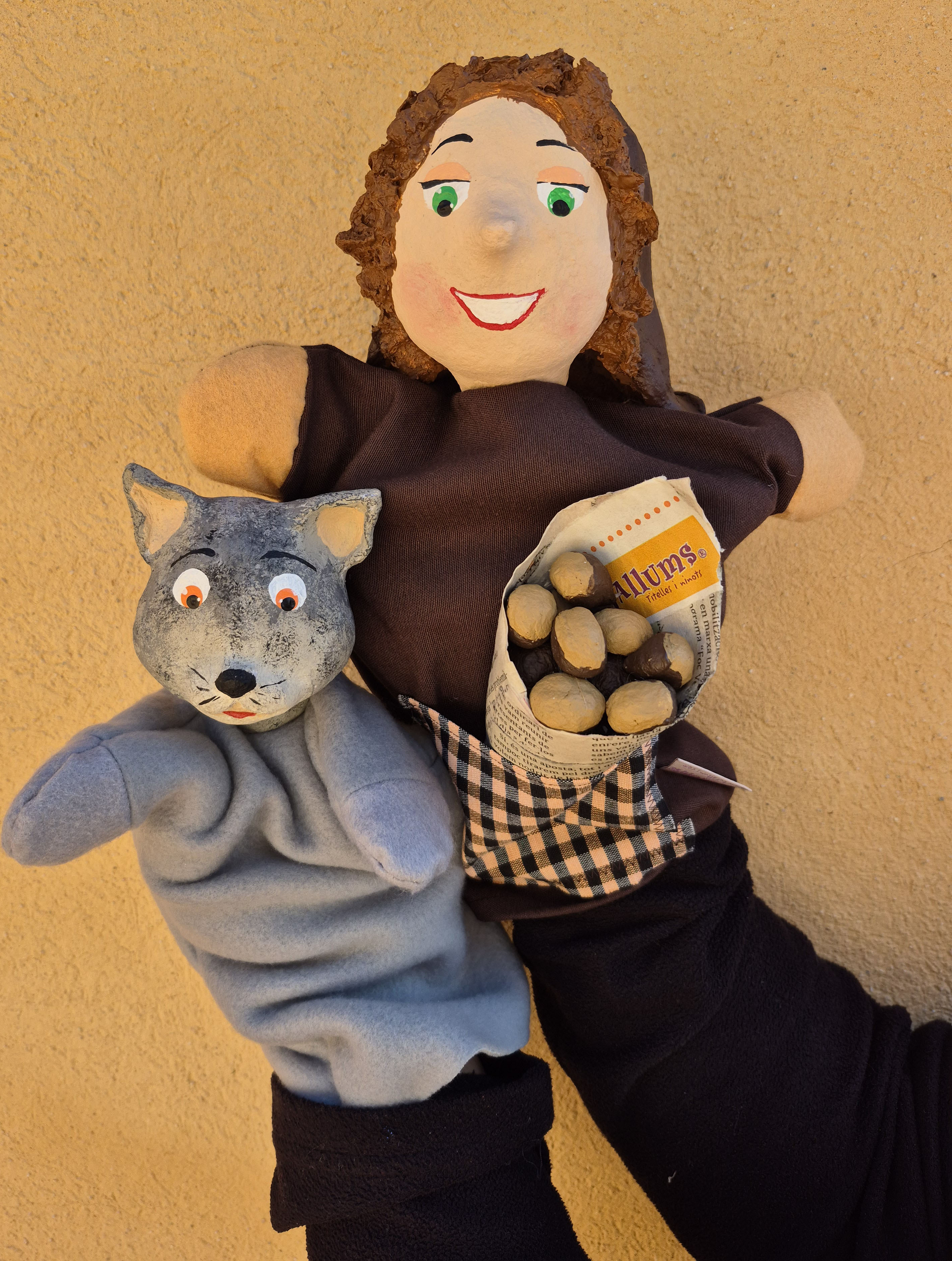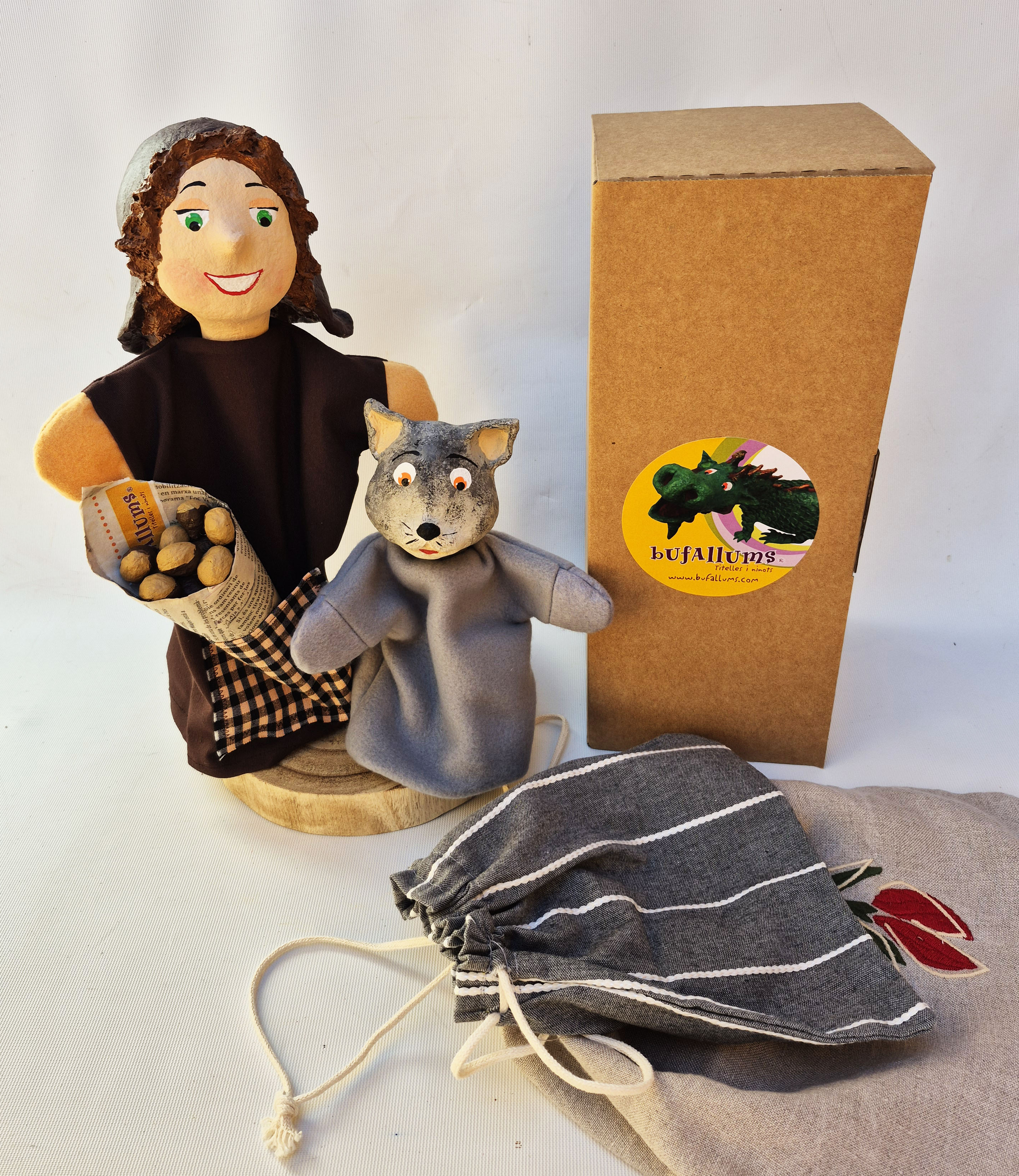 Amb aquest conjunt de titelles de mà, podràs cantar les cançons populars de tardor i explicar el conte de Maria, la Castanyera, un personatge entranyable que forma part de la Castanyada, envoltada de fulles i castanyes que anuncien la tardor.