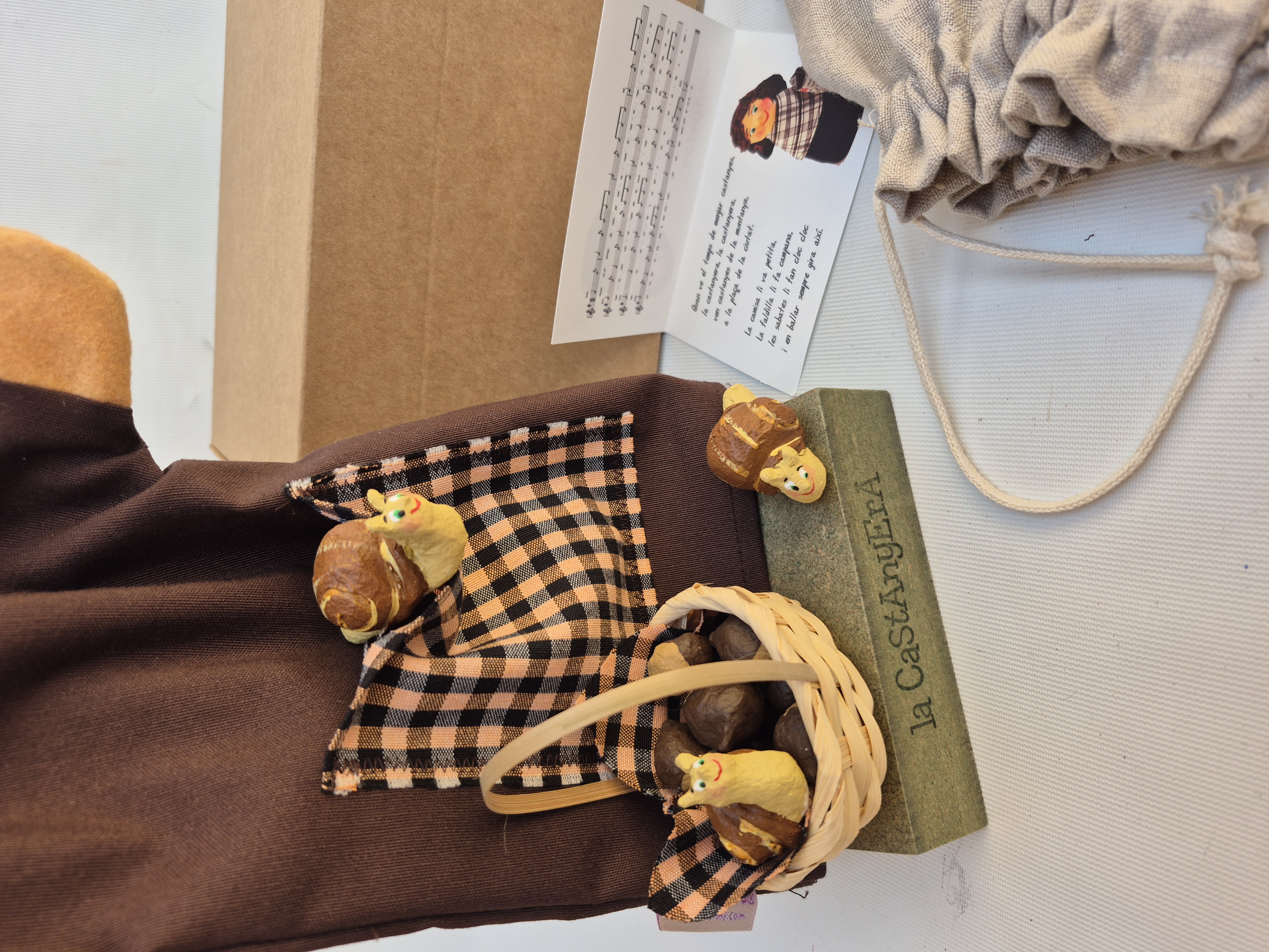 Ideal per explicar el conte de Maria, la Castanyera i els cargolets, cantar la cançó, ambientar racons de tardor i representacions teatrals.
