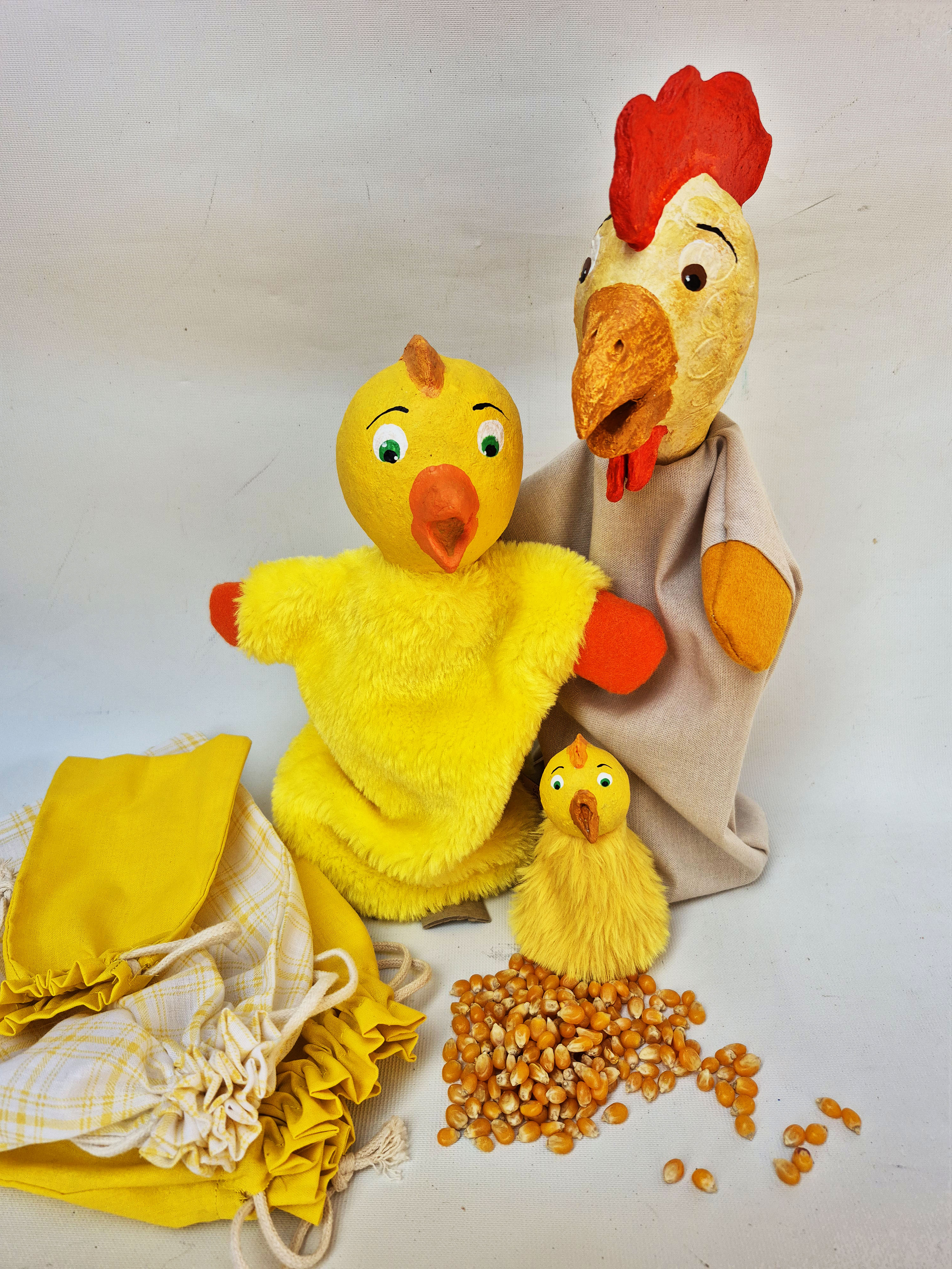 Este pack completo permite representar toda la historia del pop-up Pollo Pepe, escrito por Nick Denchfield e ilustrado por Ant Parker. Ideal para que la lectura sea interactiva y divertida, llevando los personajes del libro a la realidad con títeres.